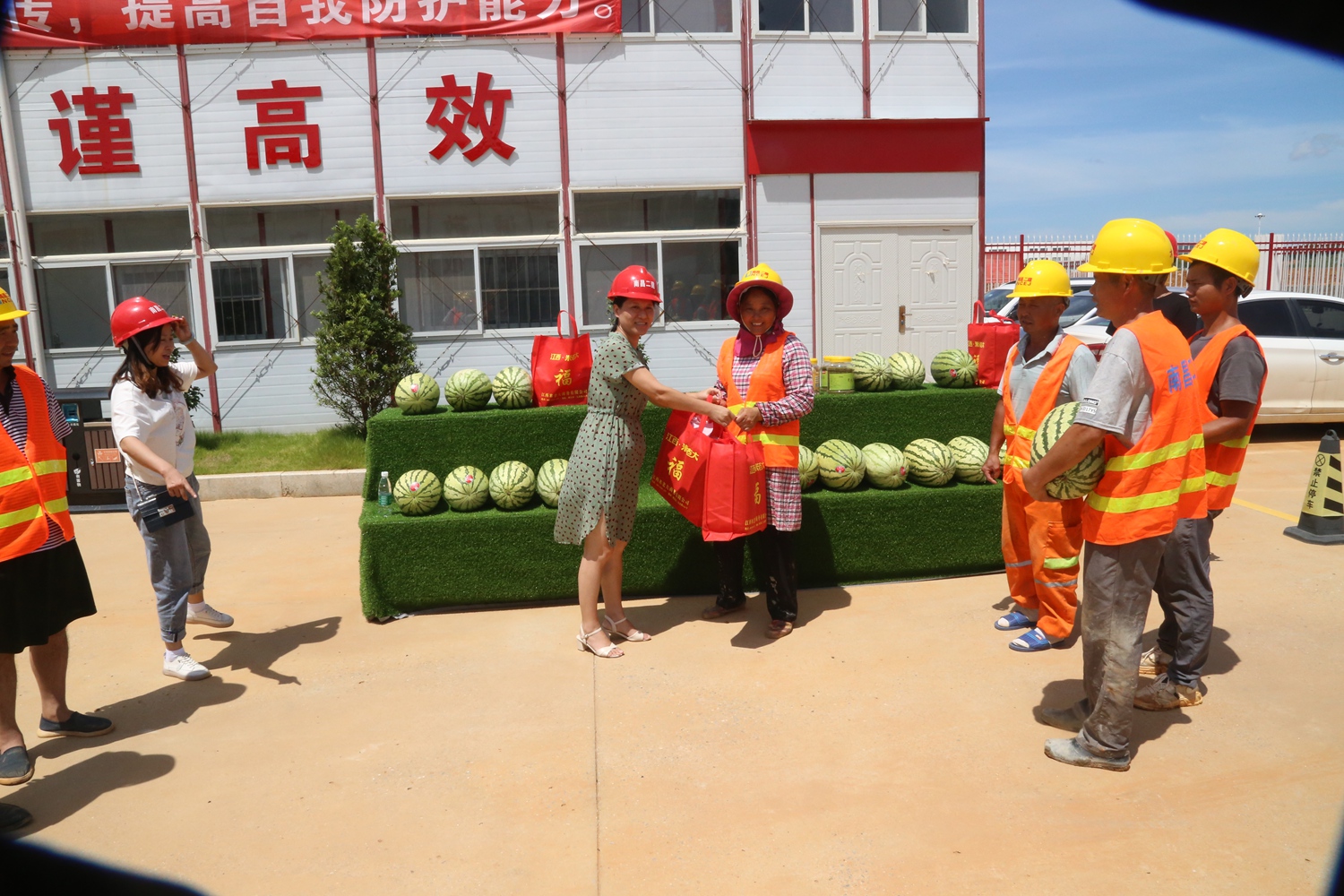 時值高溫,公司工會關心一線生產員工。黨委委員、工會主席付蓉一行,于8月13日、14日連續兩天,帶著防暑降溫用品,走訪了滕王閣南擴、繩金塔民俗風情街、南昌市第六糧庫易址重建等建設項目,代表公司看望慰問戰斗在一線的建設者們,并檢查了工地食堂、住宿等生活設施,督促項目部在防疫降溫的特殊時期,安全生產,平穩渡夏。