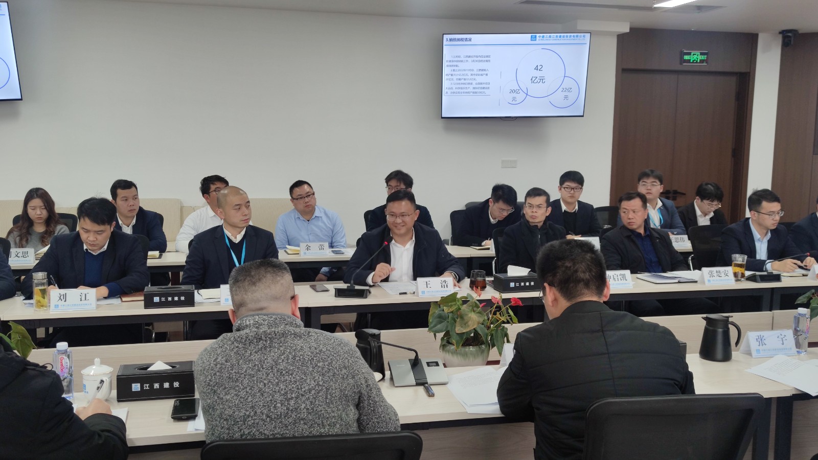座談會上,與會人員觀看了中建三局和中建三局江西建設投資有限公司企業宣傳片。江西建投公司黨委副書記、執行總經理王浩介紹了中建三局及江西建投公司在贛發展情況,以及所建設的重點工程項目。公司黨委書記、董事長王彥簡要介紹了公司目前生產經營現狀,以及現階段企業發展中存在的難點、堵點問題,希望借此機會向同行單位學習好的管理經驗和管理辦法。