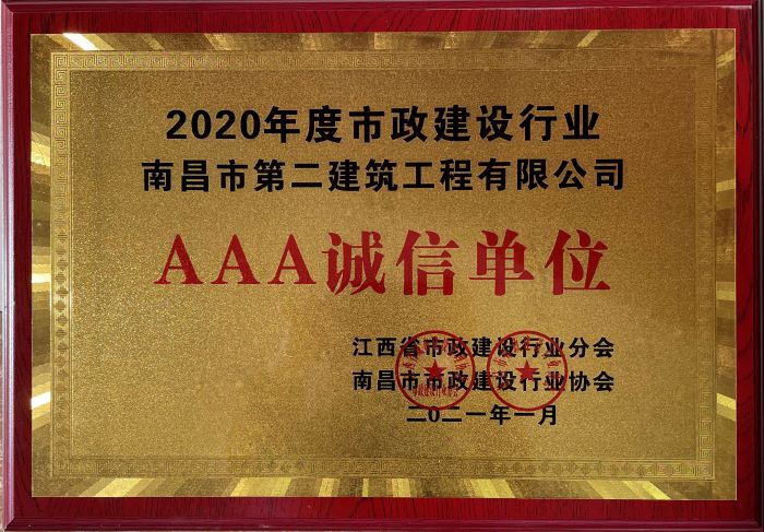 日前,江西省市政建設行業協會和南昌市市政行業協會召開兩年一次的先進表彰大會,我公司優異成績連獲2020年度省、市市政建設行業“先進單位”和“AAA誠信單位”稱號。
