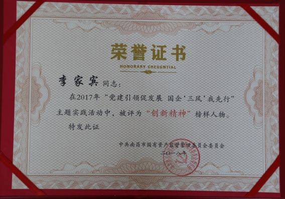 在2017年度國資委組織的“黨建引領促發展 國企“三風”我先行”主題實踐活動中,陳國明同志被評為“優秀工作者”,李家兵同志被評為“創新精神”榜樣人物,徐棽同志被評為“工匠精神”榜樣人物。